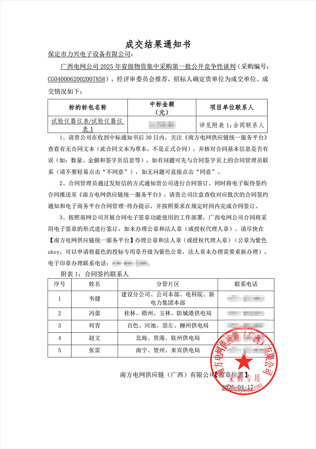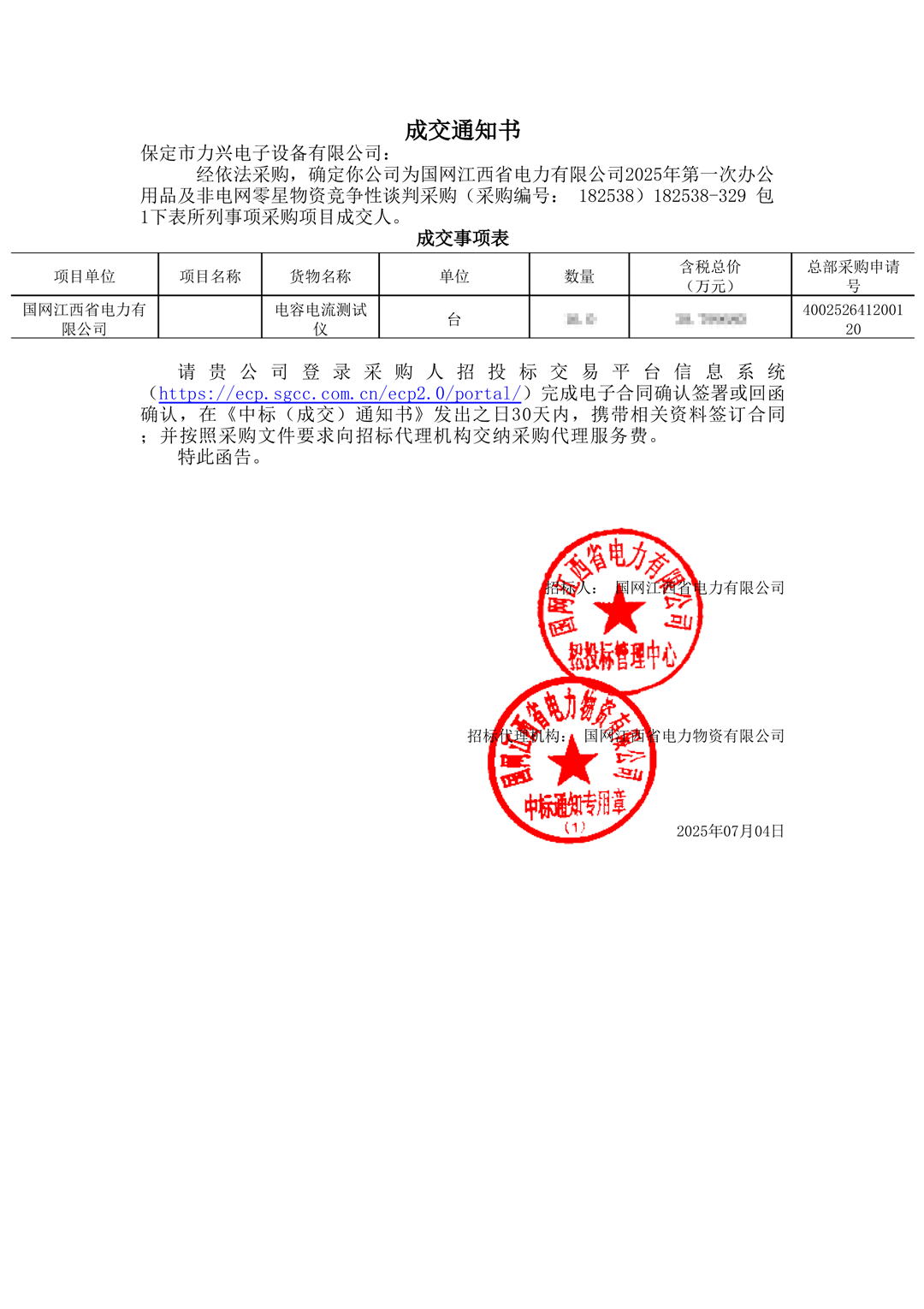力兴电子丨2025年第二季度中标合集